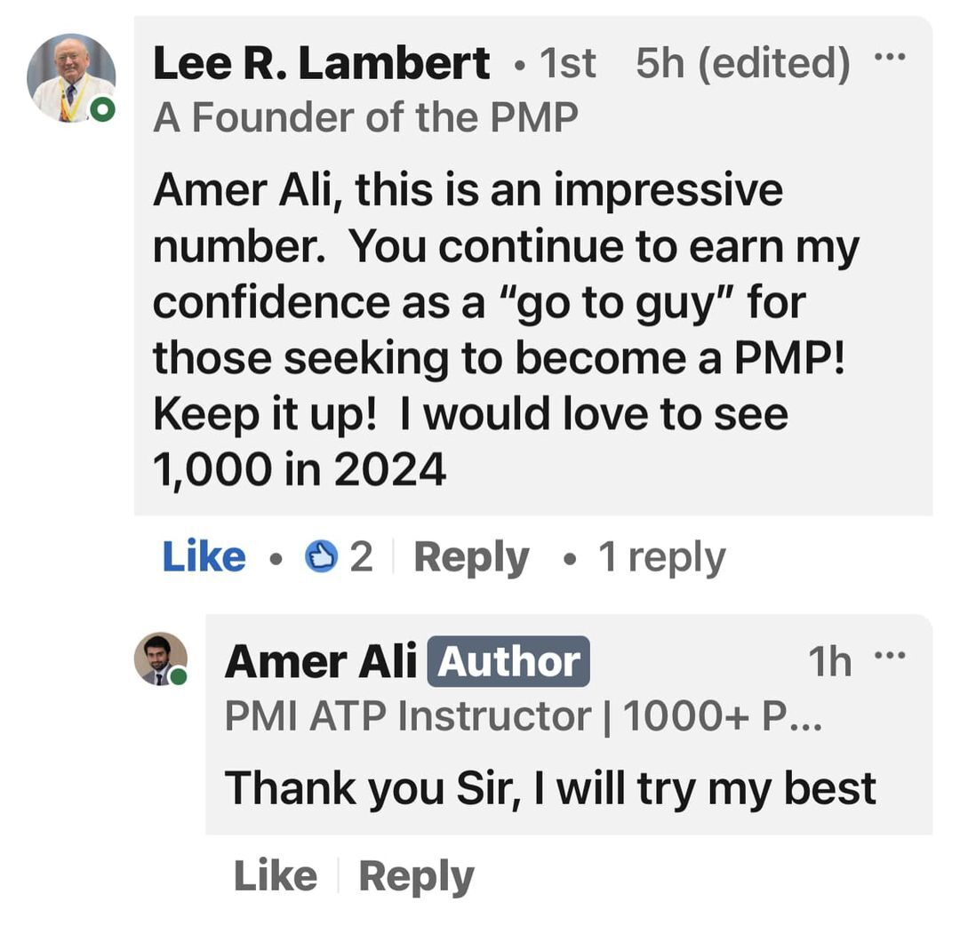 Amer Ali has the highest success rate for #PMP in the world. 250+ #PMP In 2024 as of 1 June 2024. 597 #PMP in 2023 with a 99% Success rate. He has helped 50+ Pgmp to get certified. His expertise lie in his coaching method, where you don’t have to read books.